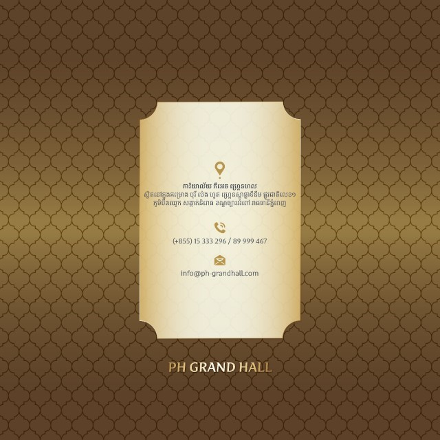 ��រ���ល័យ ភេអច េ�ហនហល ី � � � � ិ � ស�តេ��កងគេ���ង បុរ� េបង ហួត េ�ហន��ទនម ផវ��តេលខ១ � � ិ � ី ី � � ៉ ឹ ី ិ � ំ ូ ់ � � ិ ភូមបងឈក ស��តនេ��ធ ខណច��រអេ�� ��ជ��នភេពញ ំ (+855) 15 333 296 / 89 999 467 info@ph-grandhall.com